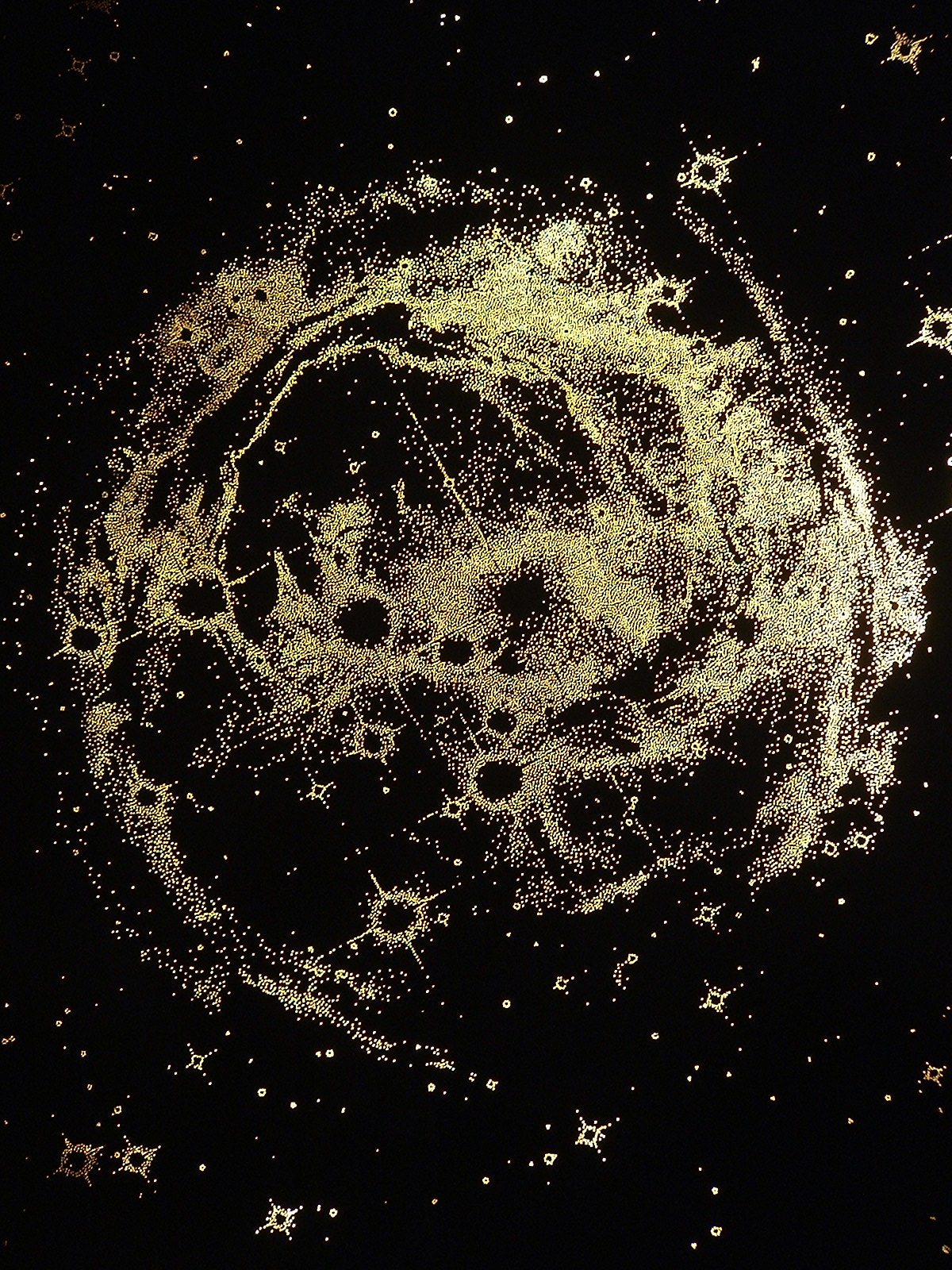 The image of an exploding star and the resulting expansion of dust, gas and light inspired this piece of work.